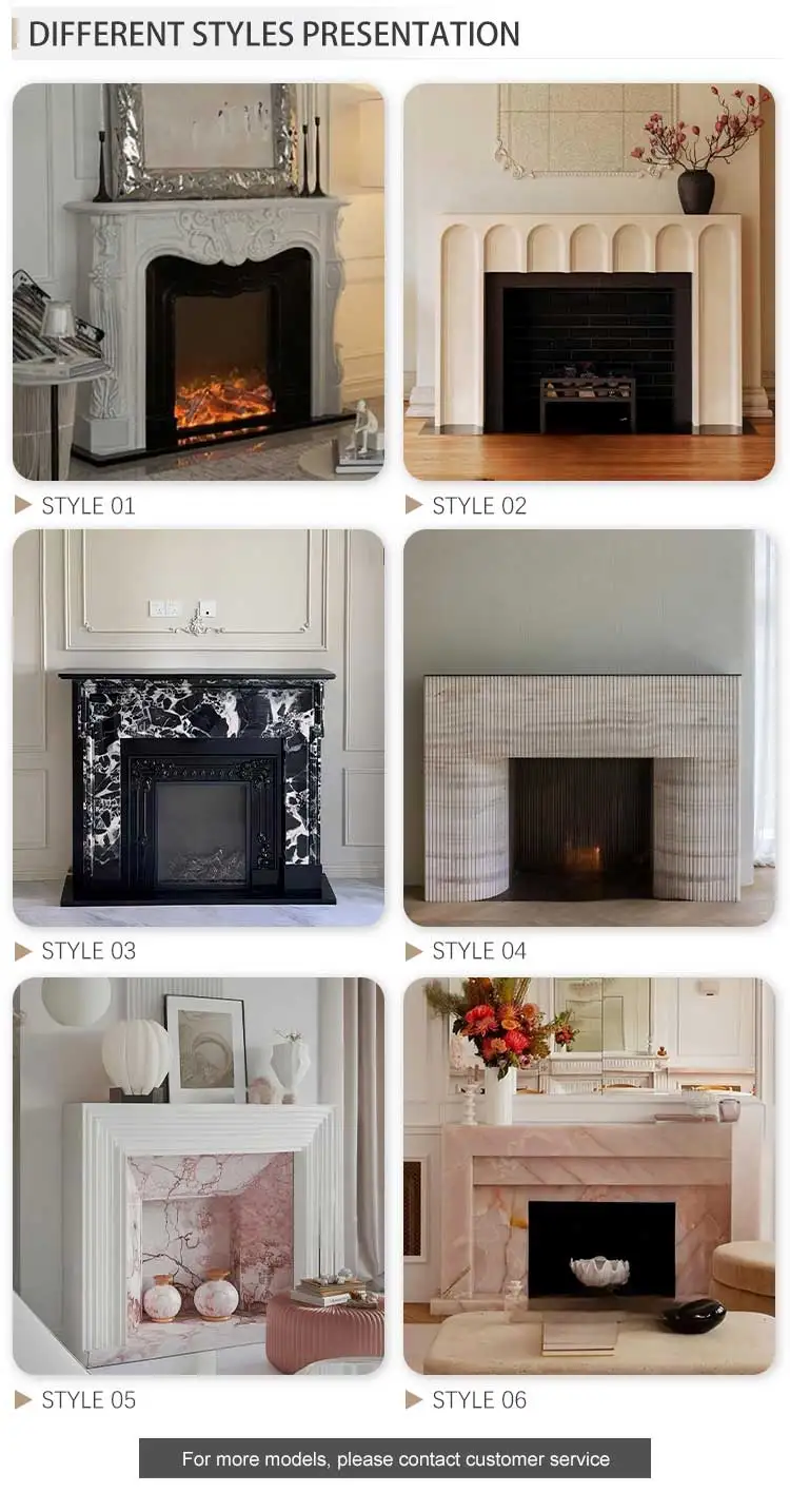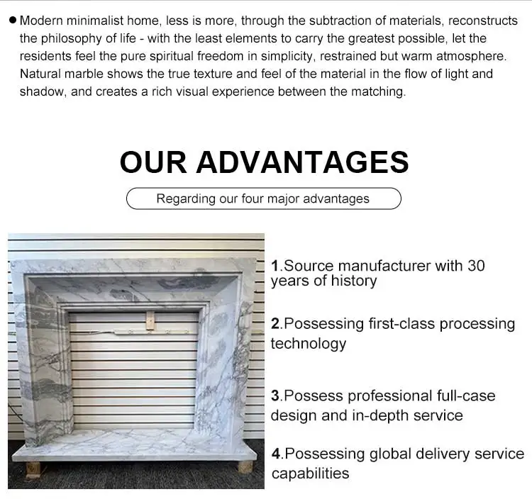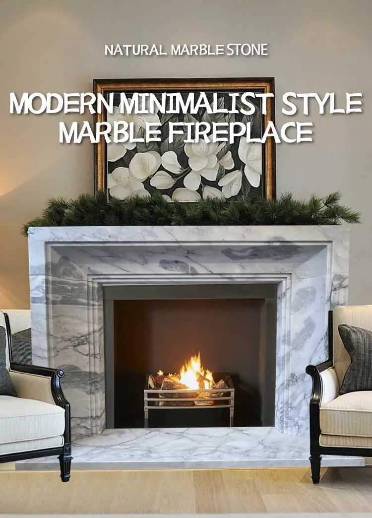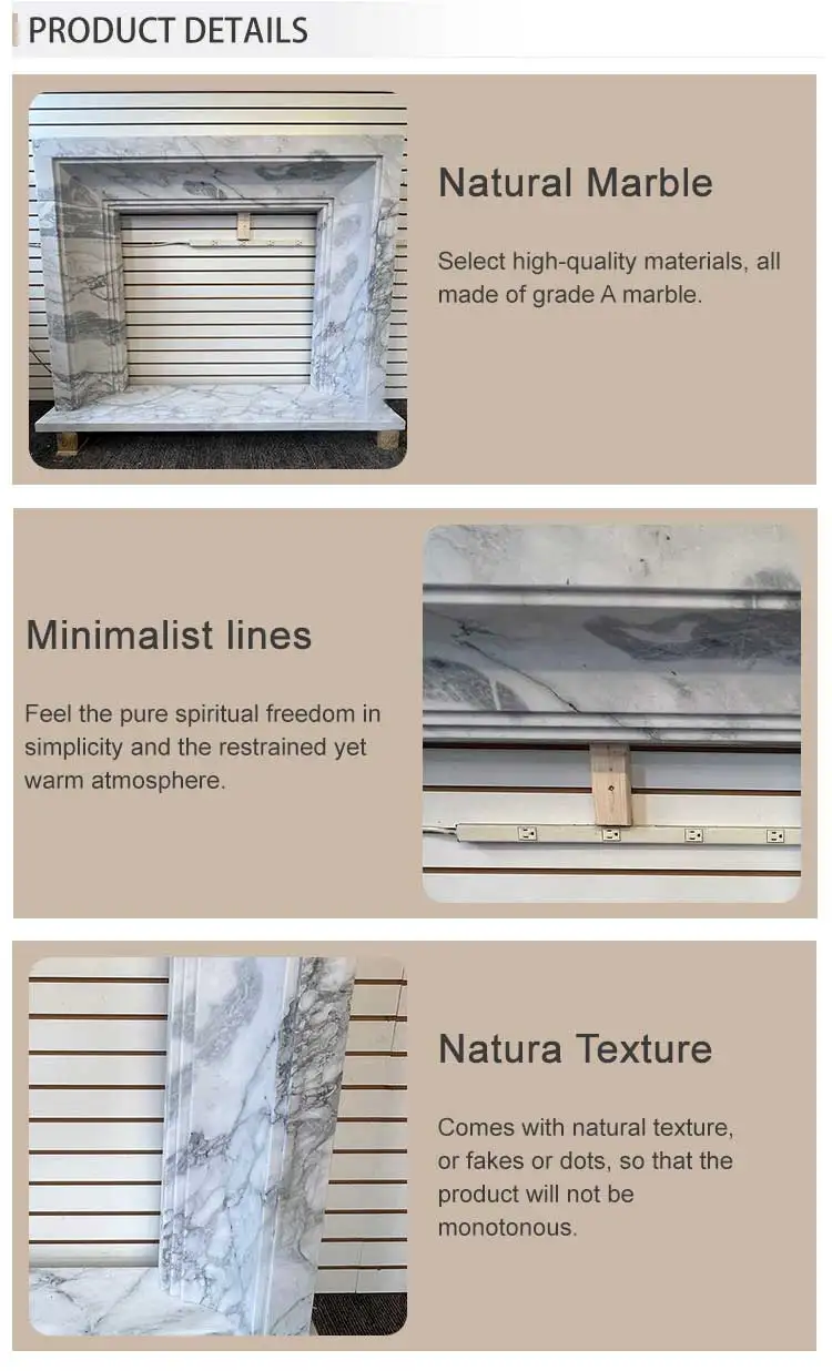 Caminetto in Marmo Naturale scolpito a Mano, Stile Semplice, Dimensioni Personalizzabili