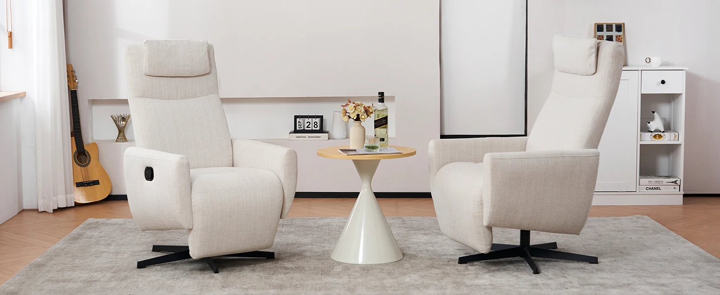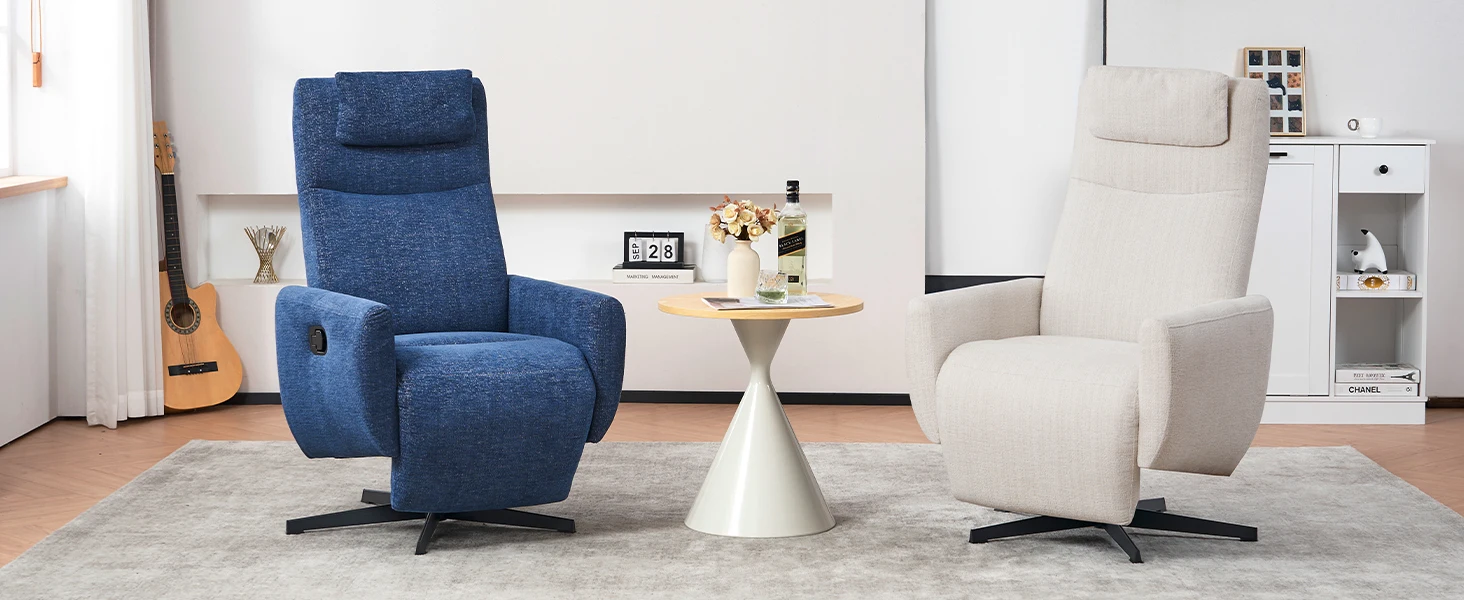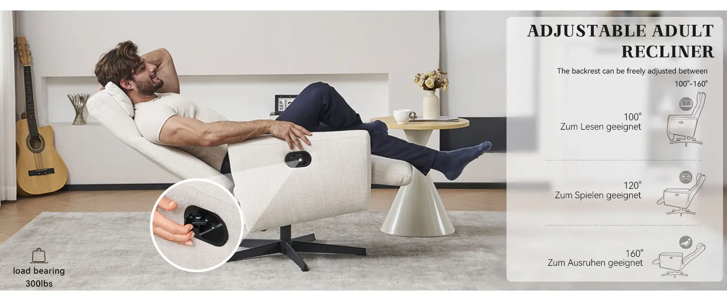 Design accurato: la poltrona reclinabile è dotata di poggiapiedi e poggiatesta. Il poggiapiedi è integrato nella struttura della poltrona per fornire un supporto stabile per le gambe, garantendo un comfort ottimale in qualsiasi angolazione e posizione di rotazione. Il poggiatesta fornisce un supporto affidabile per testa e collo per garantire un'esperienza più confortevole.